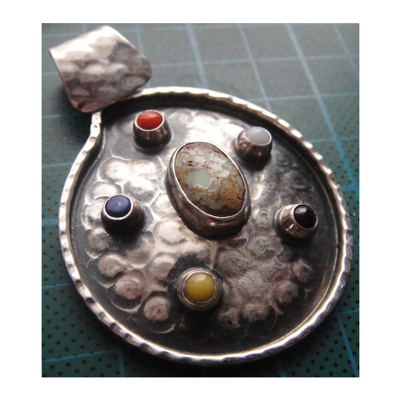 Doğal Taşlı ve İncili Gümüş Kolye Ucu_1744