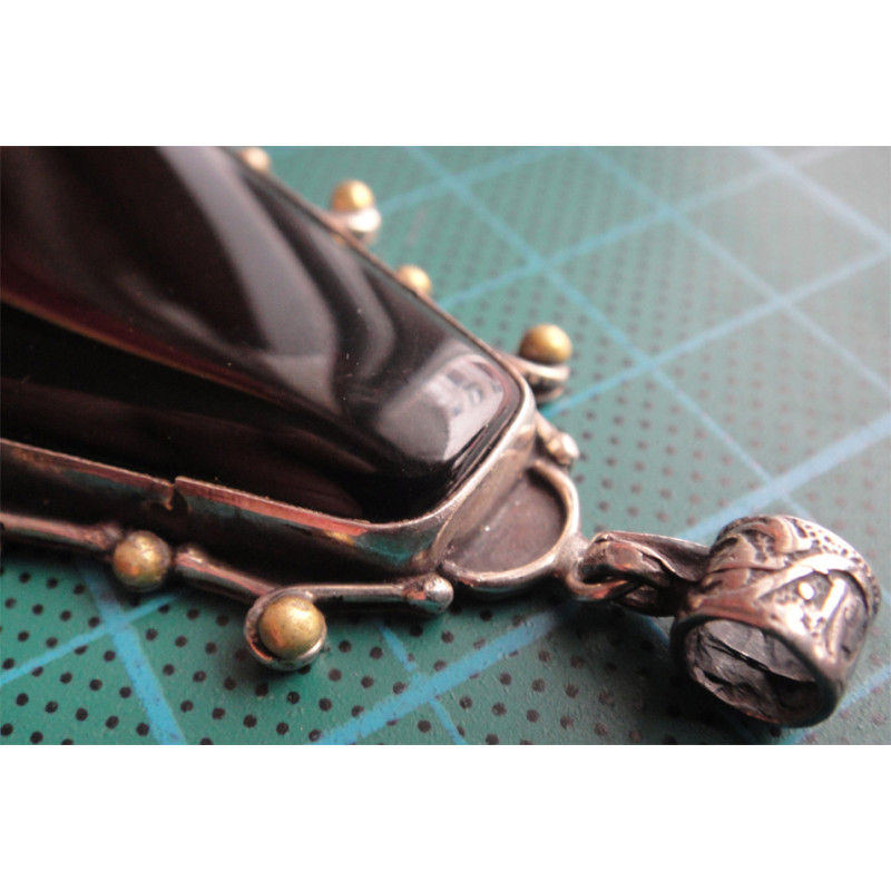 Siyah Doğal Taşlı Gümüş Kolye Ucu_1746