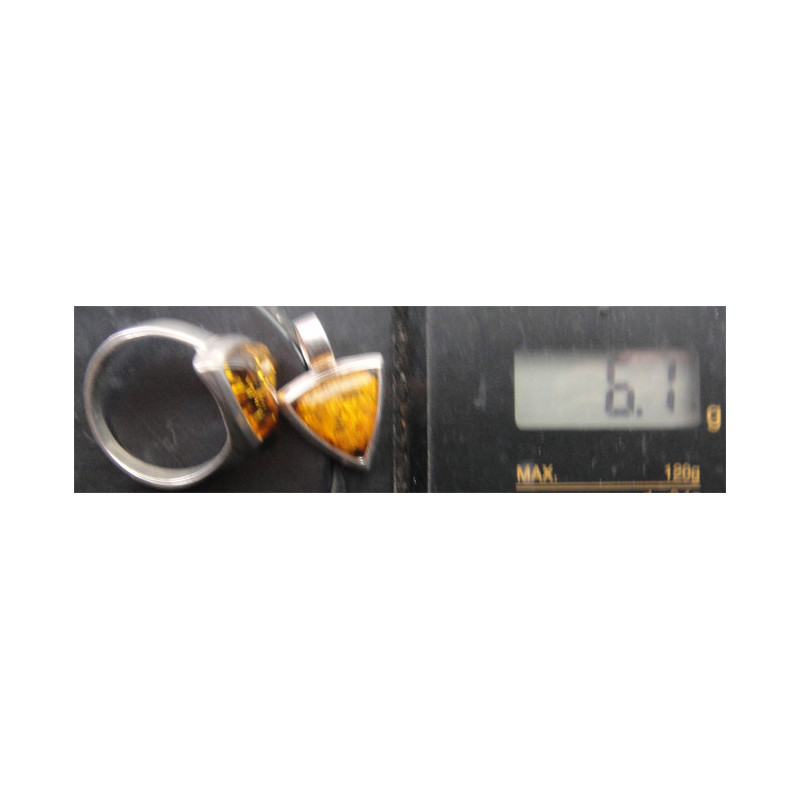 Kehribar Gümüş Kolye Ucu ve Yüzük SET_1753