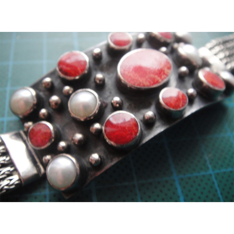 İncili ve Doğal Taşlı Gümüş Bileklik_830