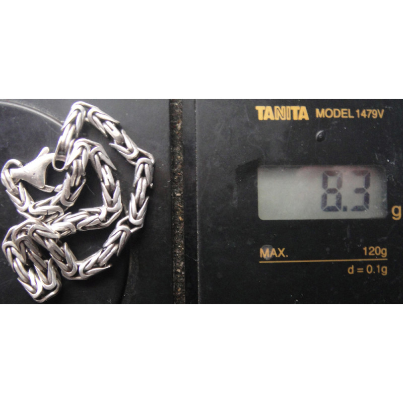 8,3 gram, 925 ayar gümüş, uzunluk 17,5 cm, eni 3,3 mm