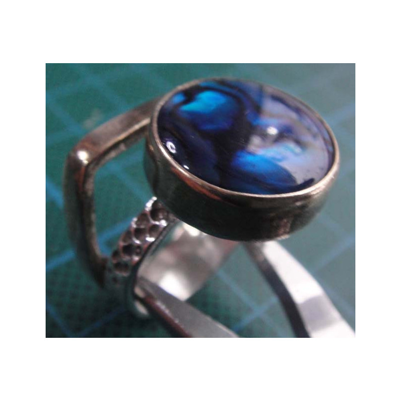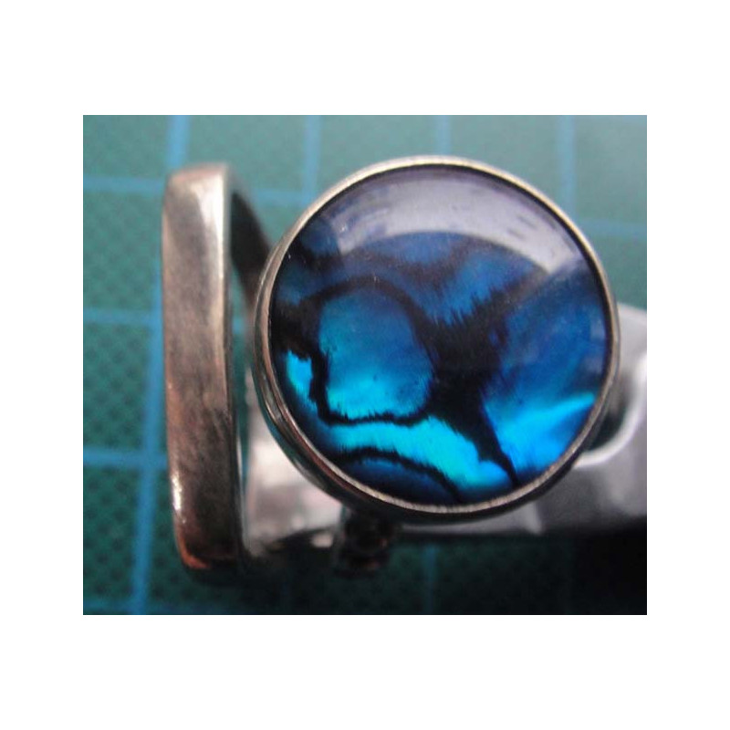 Lacivert-siyah damarlı sedef görünümlü taşlı gümüş yüzük_1366