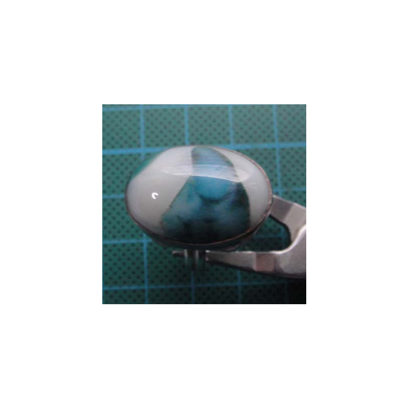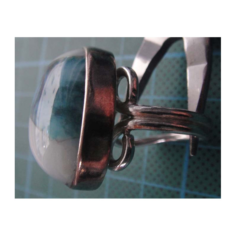 Mavi-beyaz geçişli oval doğal taşlı gümüş yüzük_1367