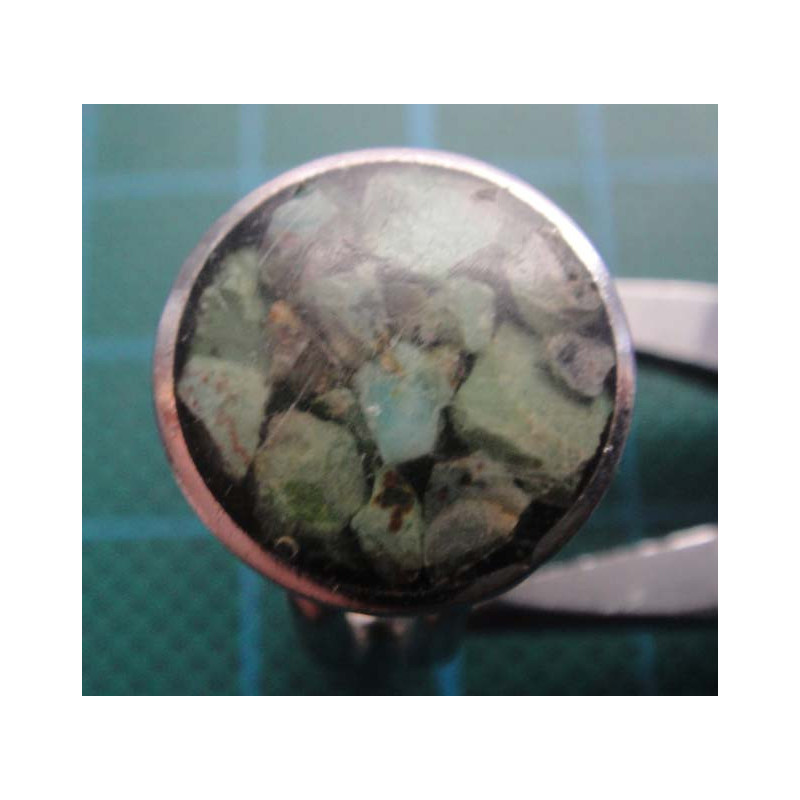 Mozaik görünümlü yeşil taşlı gümüş yüzük_1369
