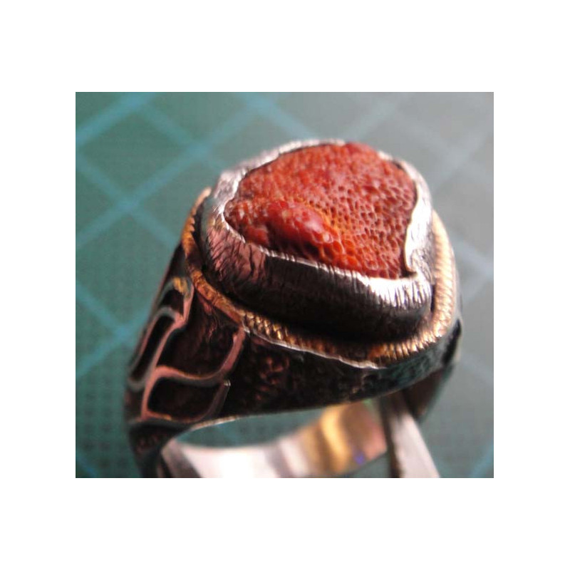 Mercan taşlı el işçilikli gümüş yüzük_1389
