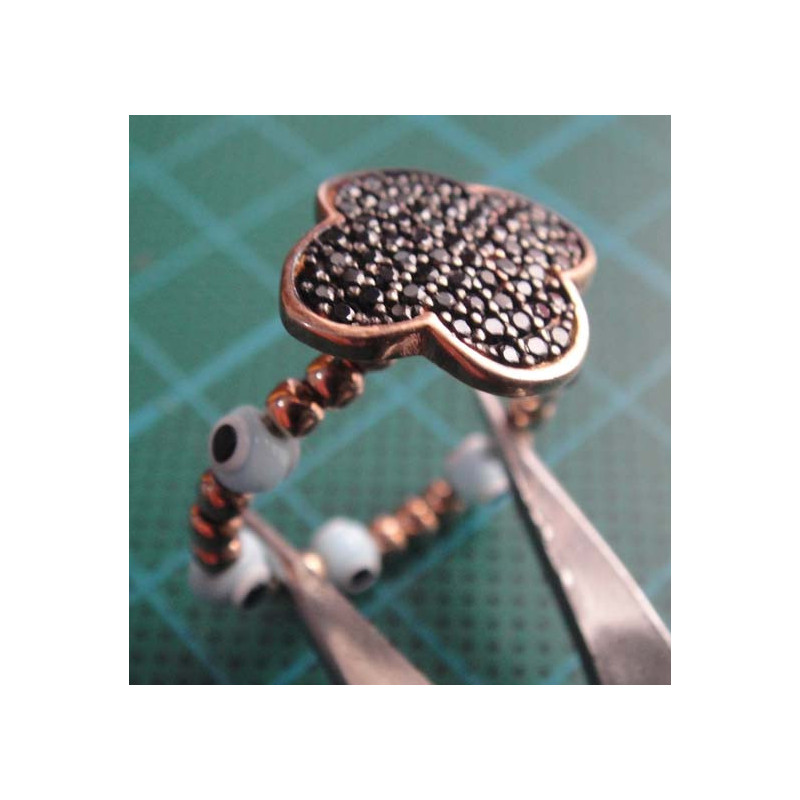 Yonca motifli nazar boncuklu gümüş yüzük_1392