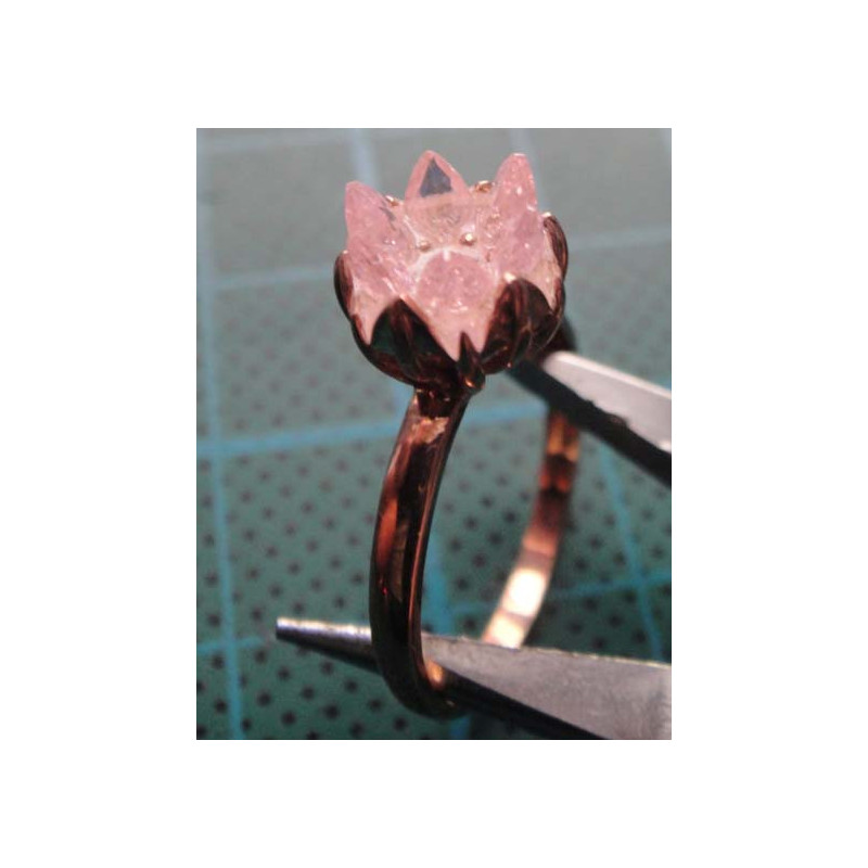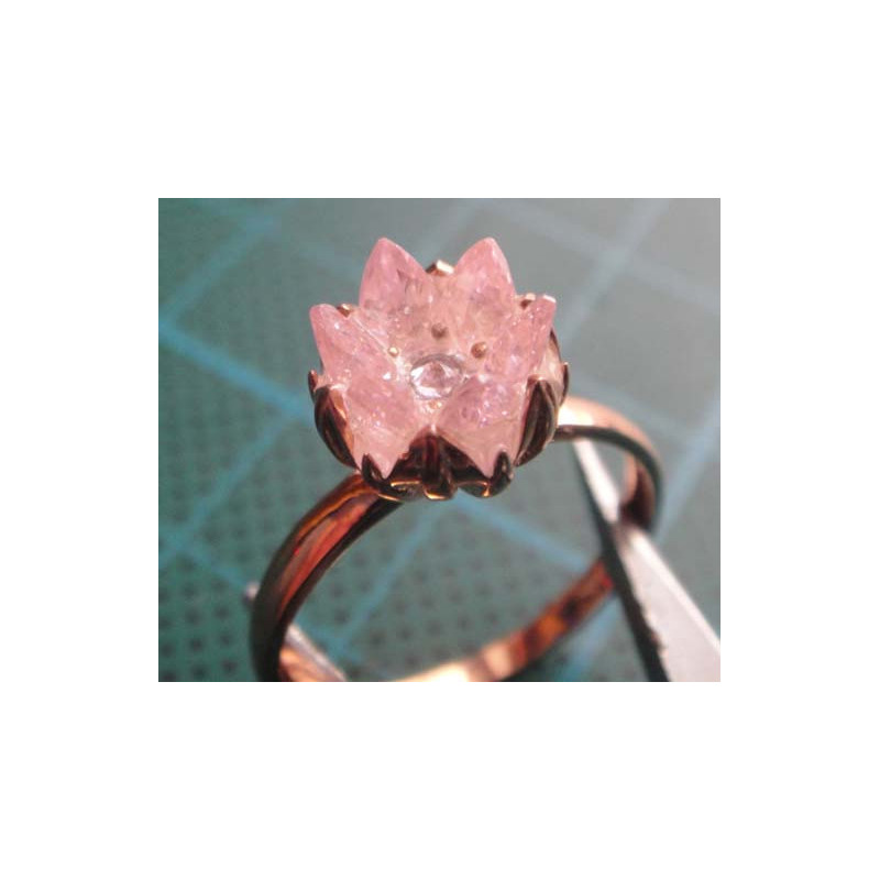 Pembe kristal çiçek taşlı gümüş yüzük_1396