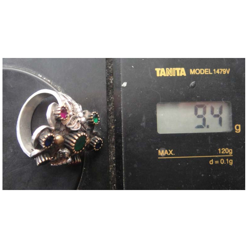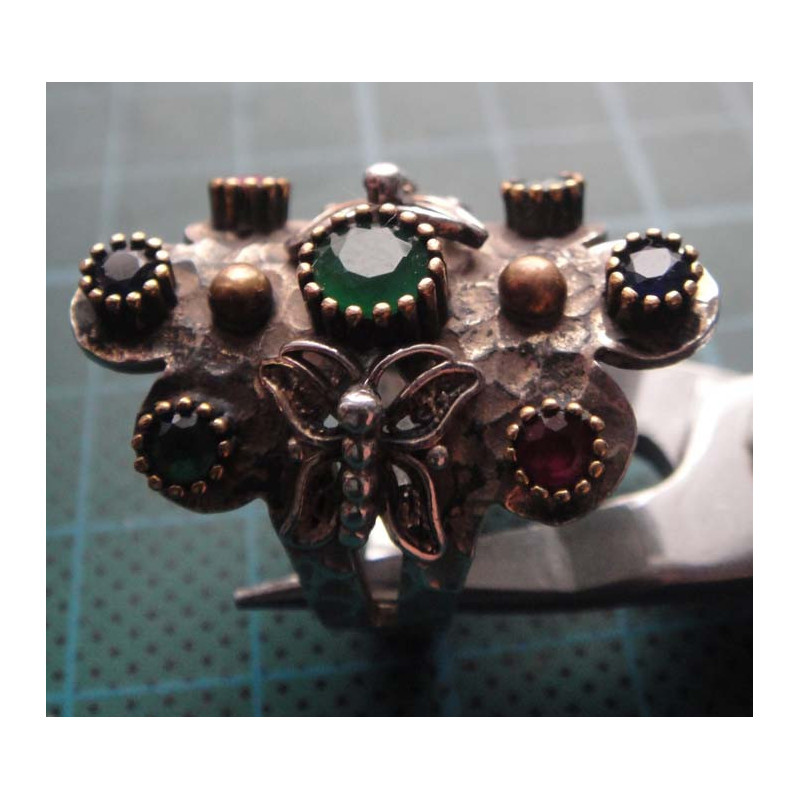 Çok Renkli Doğal Taşlı Kelebek desenli Gümüş Yüzük_1401
