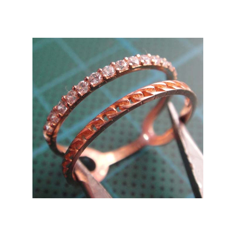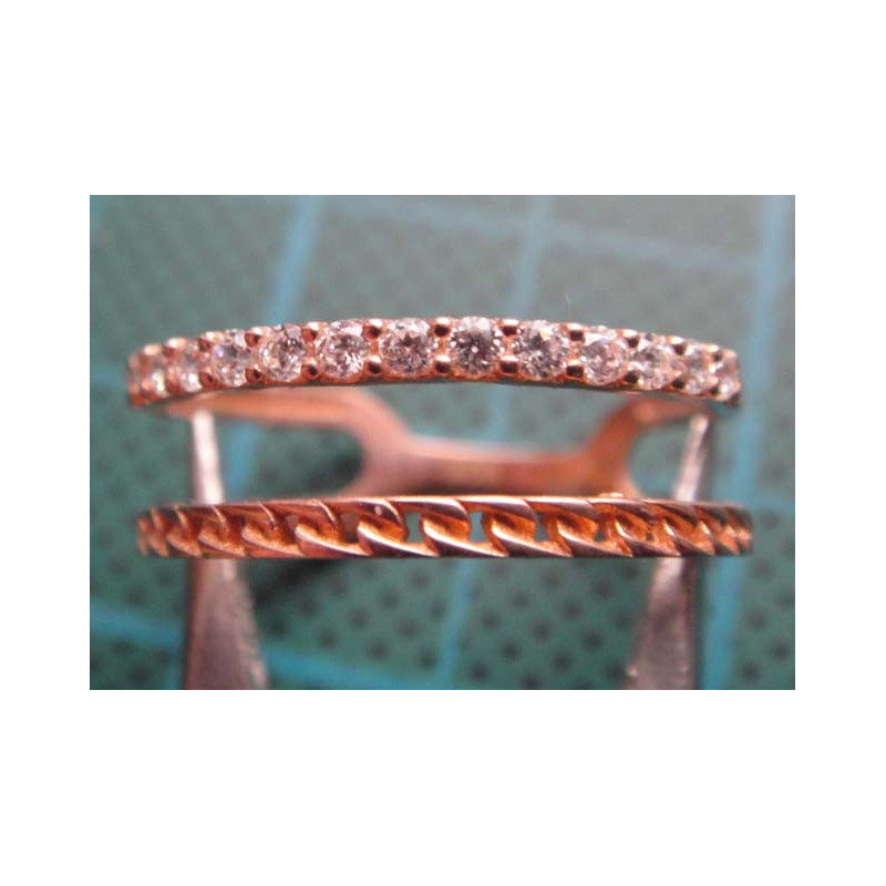 Zirkon Taşlı Örgü Bantlı İki Sıralı Gümüş Yüzük_1403