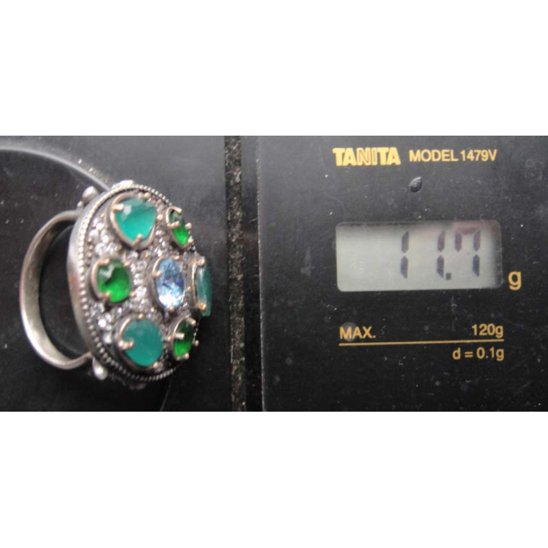 Yeşil Akik ve Zirkon Taşlı Gümüş Yüzük_1407