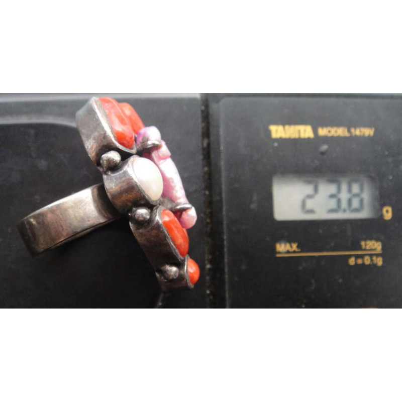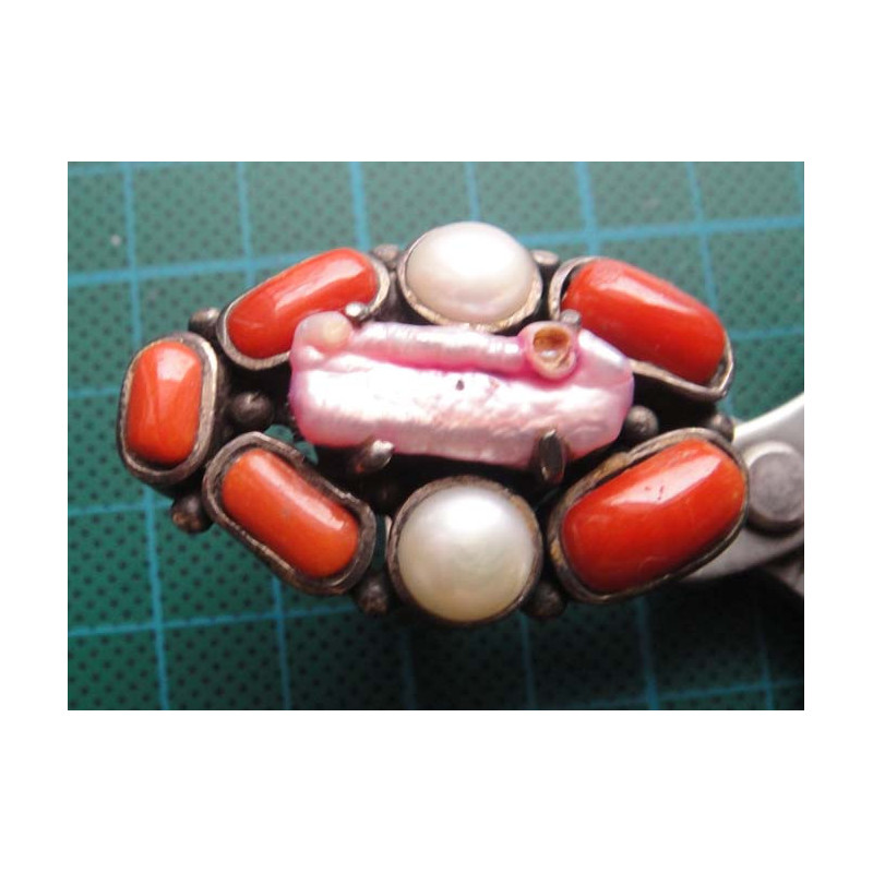 Mercan ve İnci Taşlı Gümüş Yüzük_1413