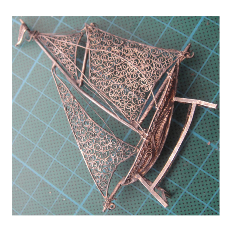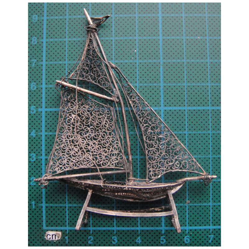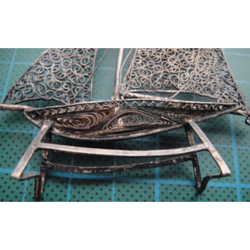 Telkari İşçilikli Yelkenli Gümüş Tekne Biblo_37
