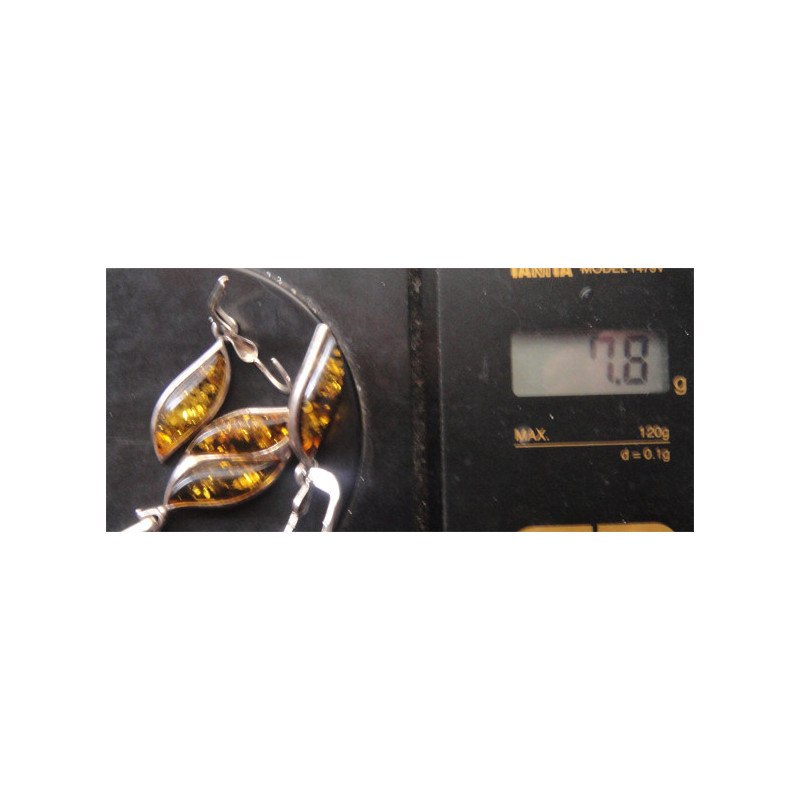 Kehribar Gümüş Küpe ve Kolye Ucu SET_443