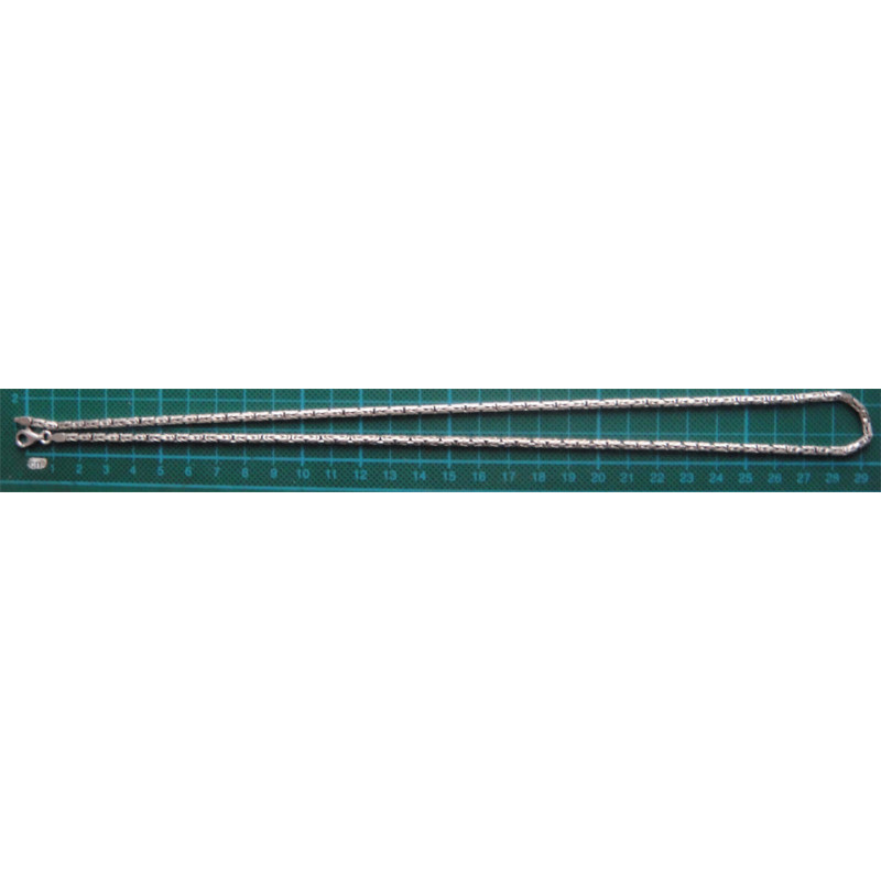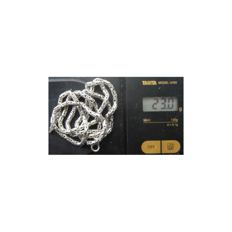 23 gram, 925 ayar gümüştür, zincir uzunluk 60 cm, kalınlık 3 mm