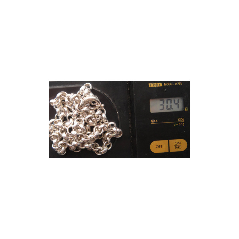30,4 gram, 925 ayar gümüştür, zincir uzunluk 55 cm, kalınlık 6,2 mm, köstek zinciri olarak da kullanılabilir