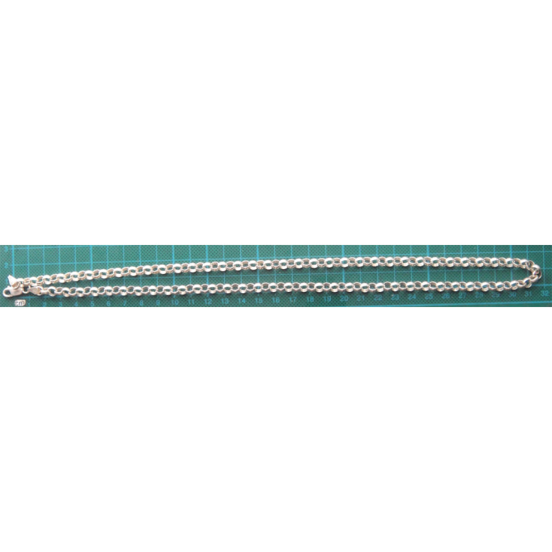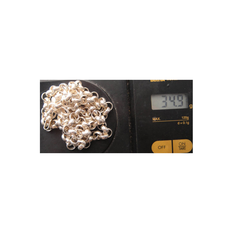 34,9 gram, 925 ayar gümüştür, zincir uzunluk 63 cm, kalınlık 6,2 mm, köstek zinciri olarak da kullanılabilir