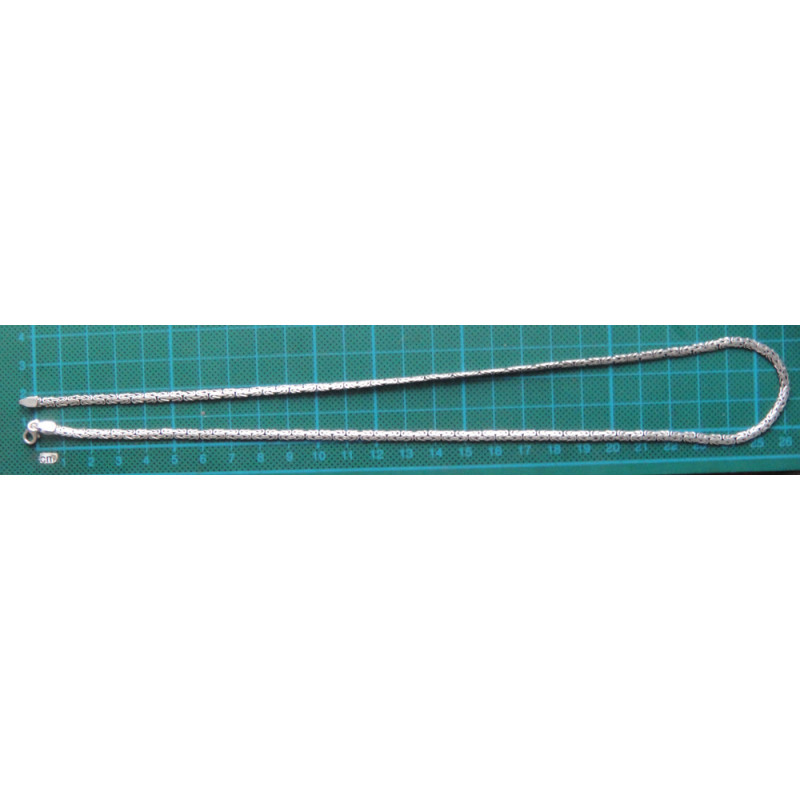 17,2 gram, 925 ayar gümüştür, kral zincir ezilerek yassı hale getirilmiş, uzunluk cm, eni 3,3 mm