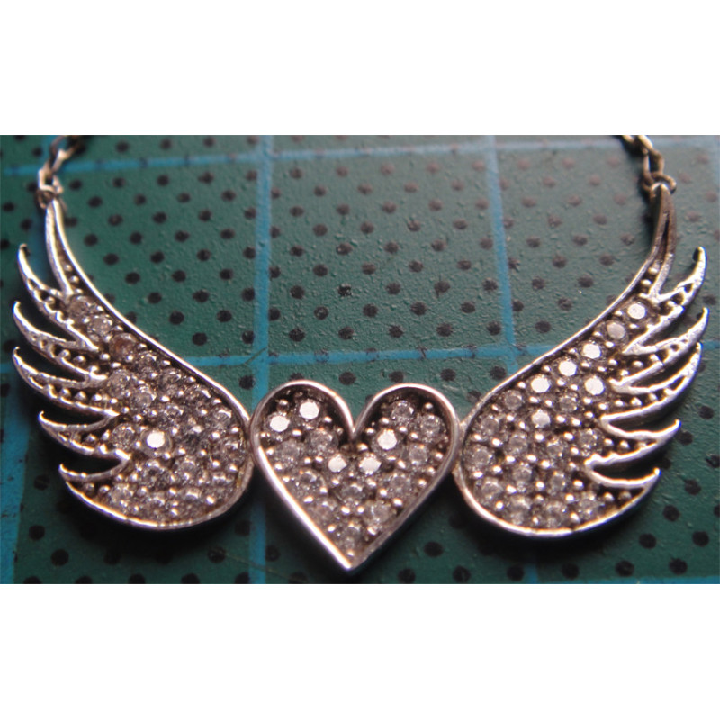 Zirkon Taşlı Kanatlı Kalp Gümüş Kolye Ucu_1862