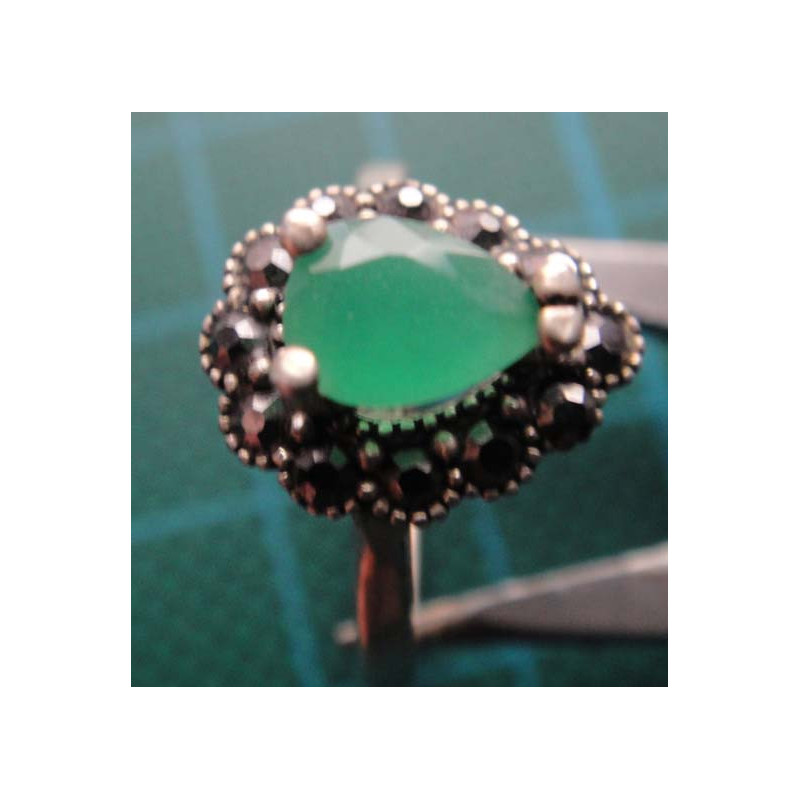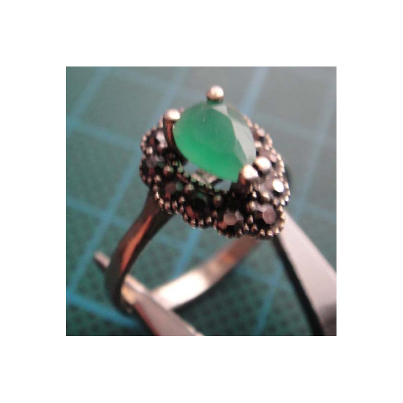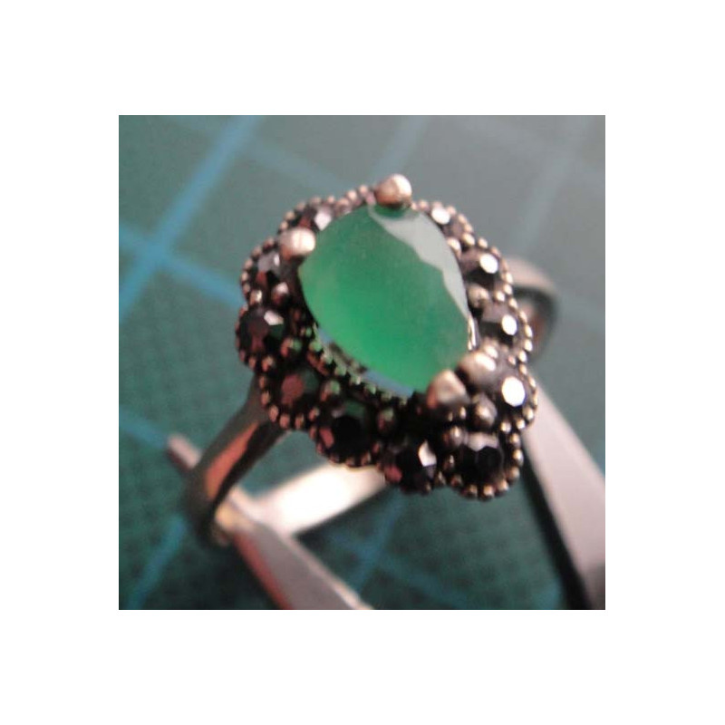 Yeşil Taşlı, Markazitli Gümüş Yüzük_1424