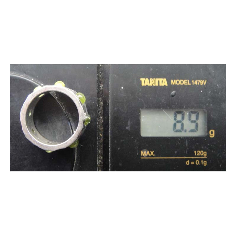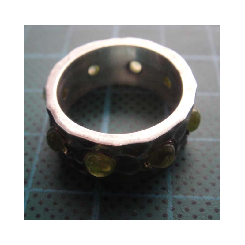 Peridot Taşlı Dövme Geniş Bantlı Gümüş Yüzük_1429