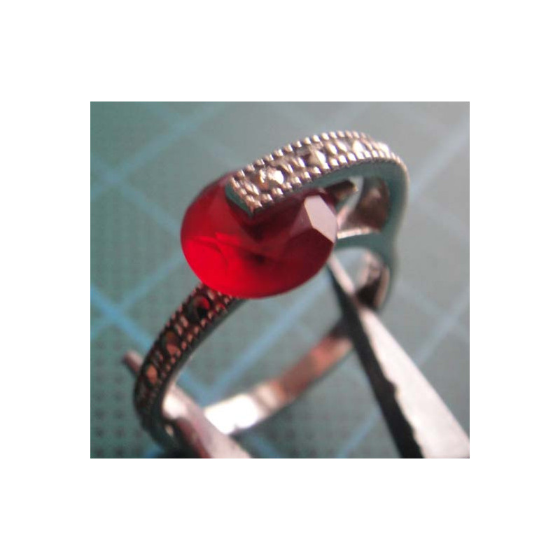 Kırmızı Taşlı Markazitli Gümüş Yüzük_1441