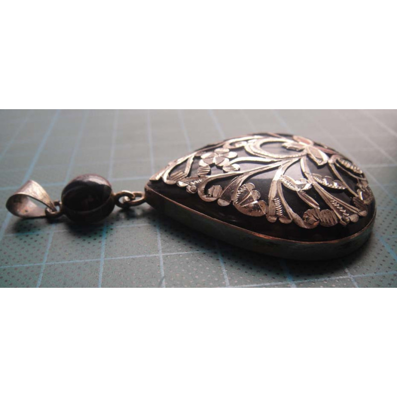 Oltu Taş Üzeri Gümüş İşlemeli Kolye Ucu_1905