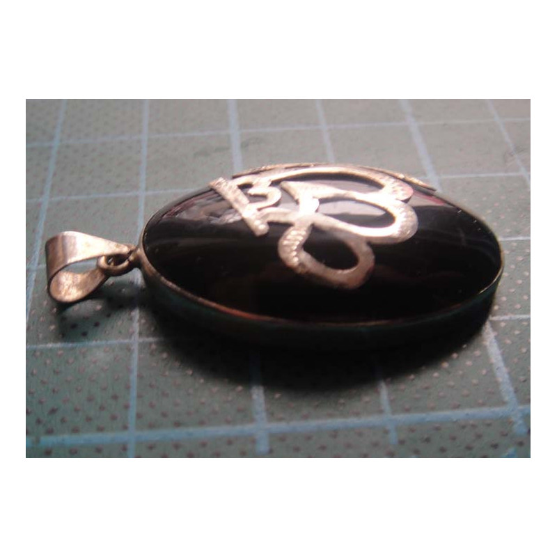 Oltu Taş Üzeri Gümüş ALLAH İşlemeli Kolye Ucu_1912