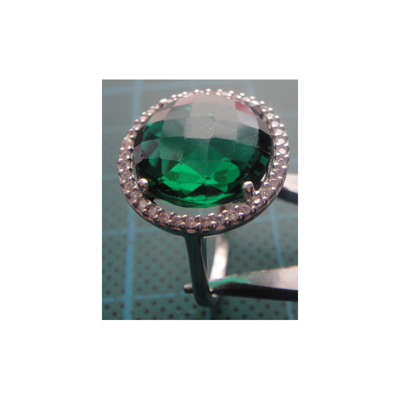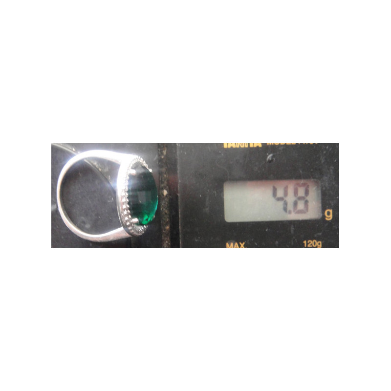 4,8 gram, 925 ayar gümüş, yeşil taş etrafı zirkon taşla bezenmiş, ölçüsü 19 numara, üst çap 17,5 mm
