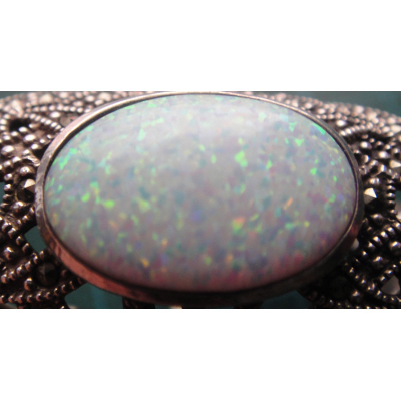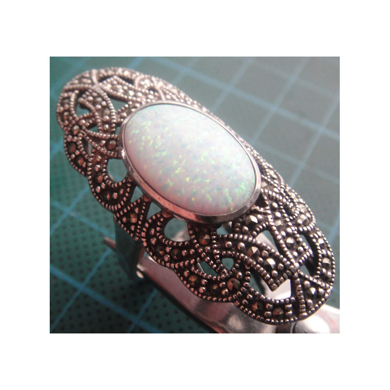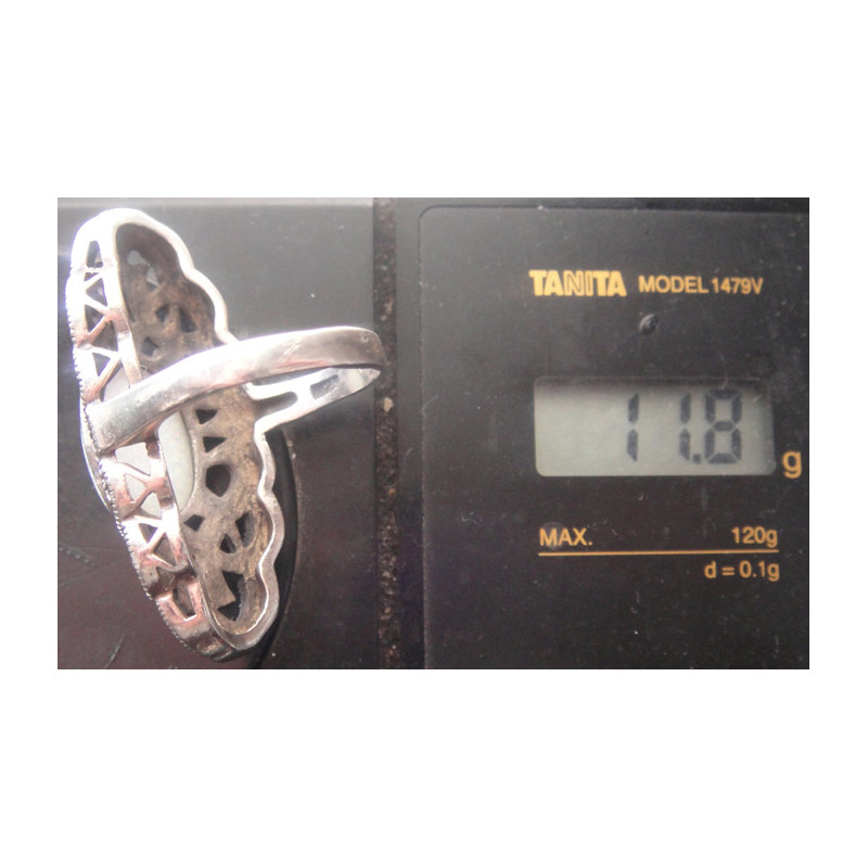 11,8 gram, 925 ayar gümüş, kenarları markazit taşlı, ölçüsü 18 numara, 19,4 x 42,8 mm
