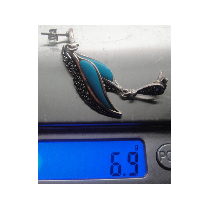 Yaprak Formunda Markazit Taşlı Gümüş Küpe_482