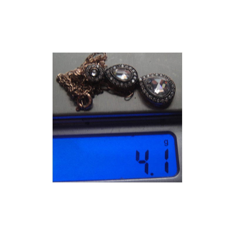 4,1 gram, 925 ayar gümüştür, roze renginde, üç parça da oynaktır, zincir uzunluk 40-44 cm