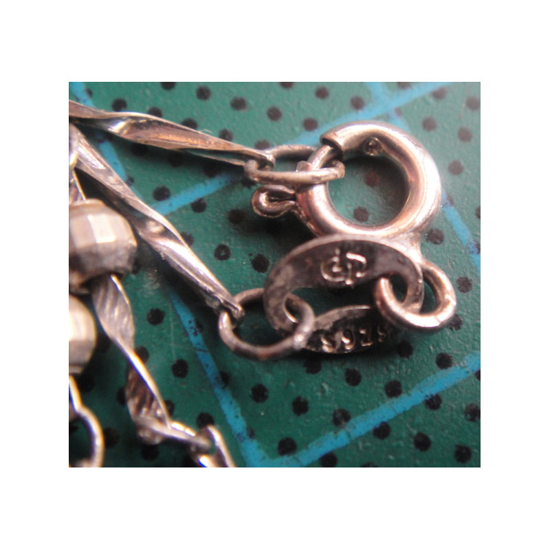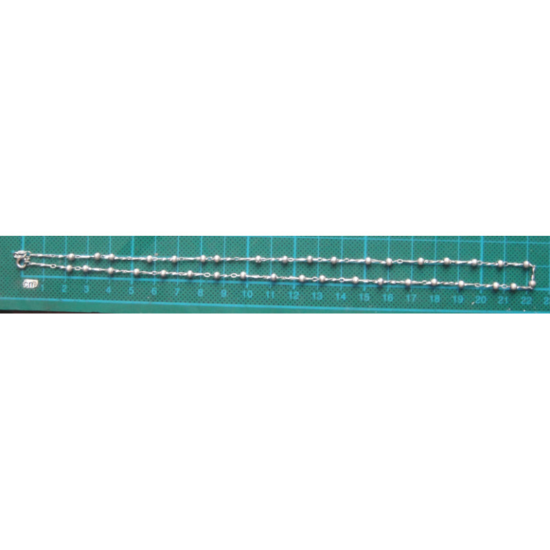 3,2 gram, 925 ayar gümüştür, rodajlıdır, zincir uzunluk 45 cm, top çapı 2,9 mm