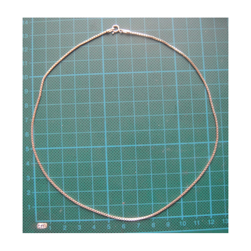 4,2 gram, 925 ayar gümüştür, altın suyuna batırılmış, zincir uzunluk 40 cm, eni 1,3 mm