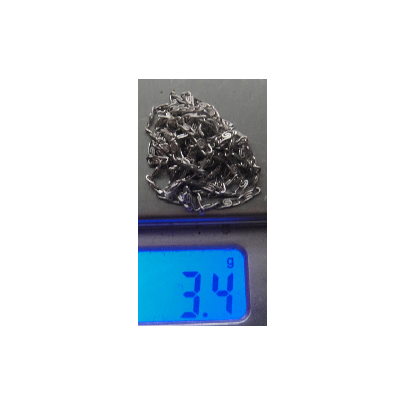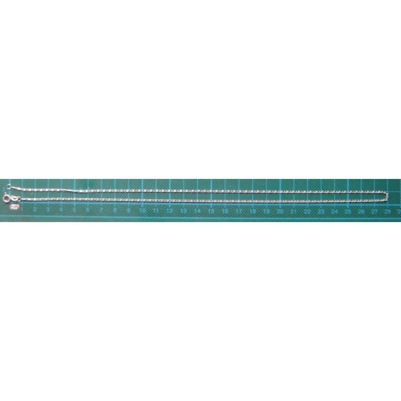 2,2 gram, 925 ayar gümüştür, zincir uzunluk 56 cm, kalınlık 1,4 mm