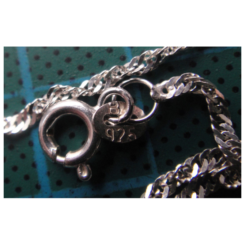2,1 gram, 925 ayar gümüştür, zincir uzunluk 43 cm, kalınlık 1,6 mm