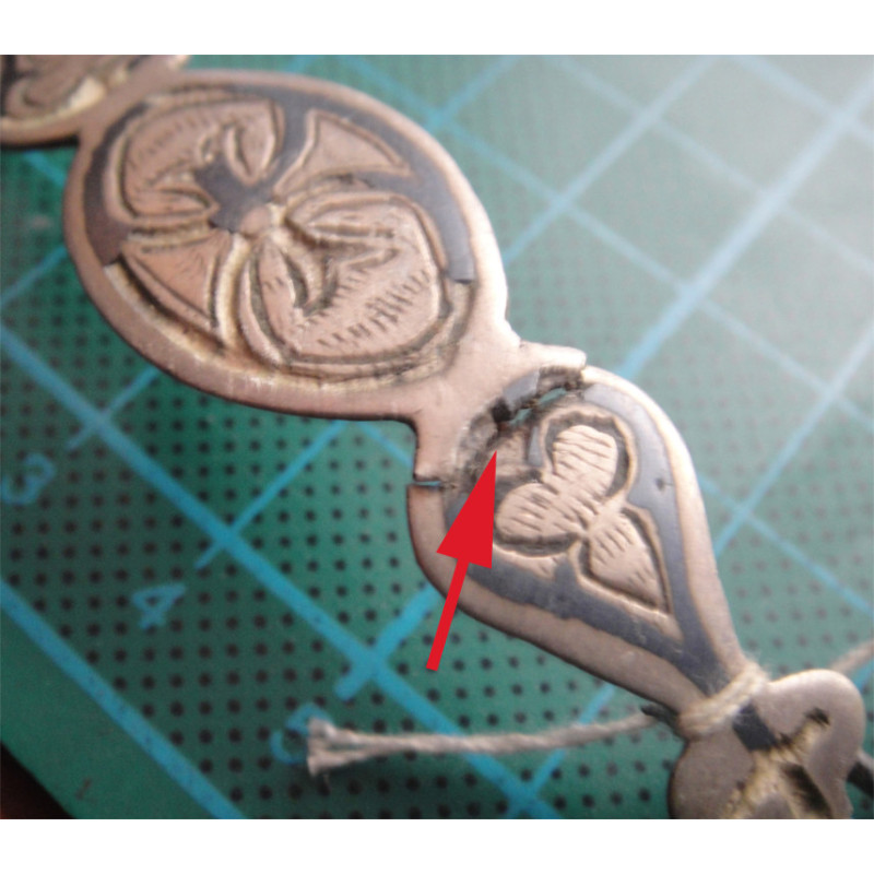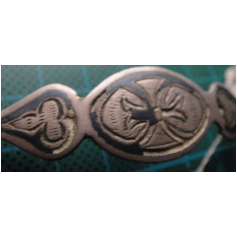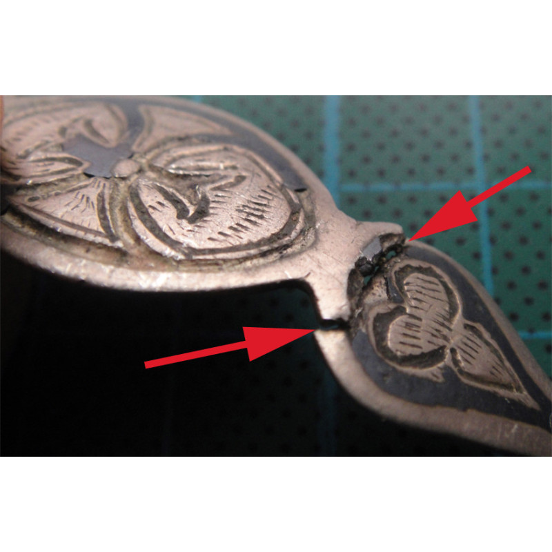 6,8 gram, savatlı gümüş, arkada klips kırık olup klips parçası gümüş değildir, ön tarafta da resimde okla gösterildiği gibi kırık yer bulunmaktadır. Bu nedenle hurda fiyatınadır.